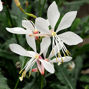 Pollinators and gardeners alike are drawn to Gaura’s delicate looking blooms, which appear in shades of red, pink, white and beguiling bicolor flowers from early summer through frost. Held on slender, wand like stems, the flowers magically float and sway with every passing breeze. Fine, lance shaped foliage provides a subtle backdrop, ranging from fresh green to variegated or red-tinged.